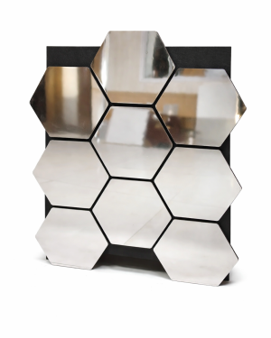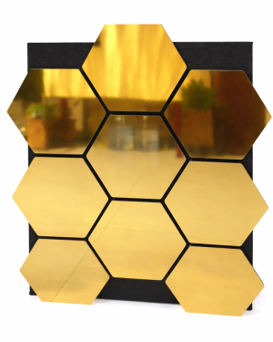 Está compuesto por varios espejos hexagonales perfectamente alineados, montados sobre una base resistente que resalta el diseño y facilita su instalación. Su acabado reflectivo aporta mayor amplitud y luz a los espacios, convirtiéndolo en una pieza decorativa ideal para salas, recibidores, dormitorios, oficinas o paredes decorativas.